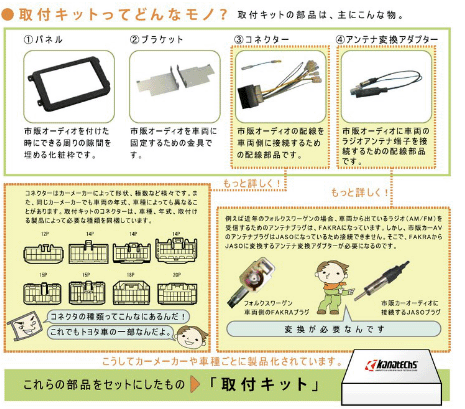 ●車種によっては市販カーAVを取り付ける際カーディーラーから純正部品を購入する必要があります。